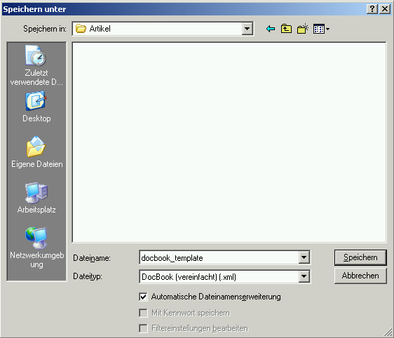 Als DocBook speichern